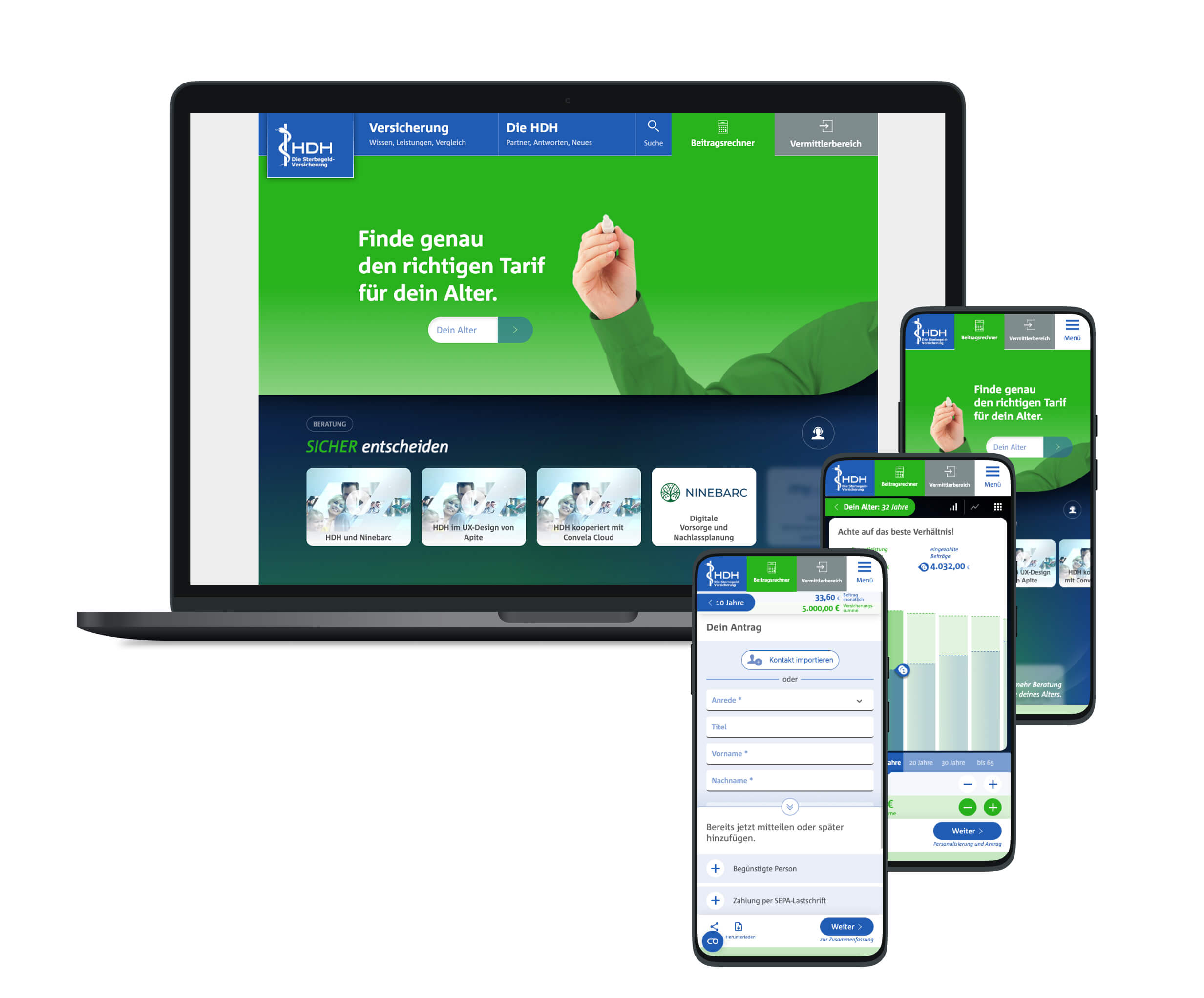 Wir verbinden Beratung, Konzeption, Design und Entwicklung zu ganzheitlichen Lösungen. Im HDH-Projekt konnten wir unsere Expertise in strategischer Beratung, UX-Design, moderner Webentwicklung und agiler Projektsteuerung voll ausspielen. Die enge, konstruktive Zusammenarbeit mit der HDH und unsere Expertise in Architektur und Sicherheitstechnologien waren entscheidend, um praxisnahe, sichere und standardisierte Workflows für Vermittler und Endkunden zu schaffen.